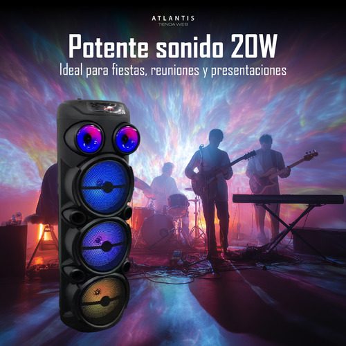 Con el Altavoz VS-SS2596 de Atlantis Tienda Web, disfrutarás de sonido de alta calidad, conectividad completa y estilo en cualquier evento.