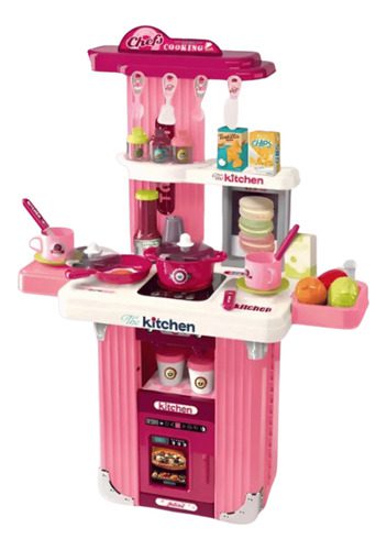 Cocina De Juguete Con Accesorios Y Estufa Para Niñas 3 En 1 Portátil Rosa