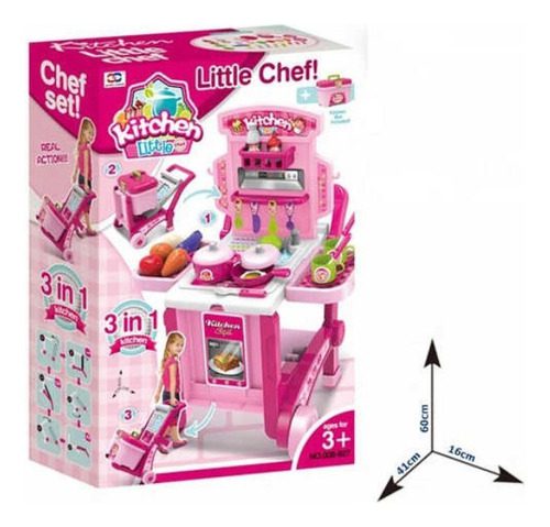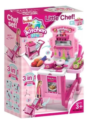 Cocina para niñas Maleta portátil Little Chef 3 en 1 – Rosado