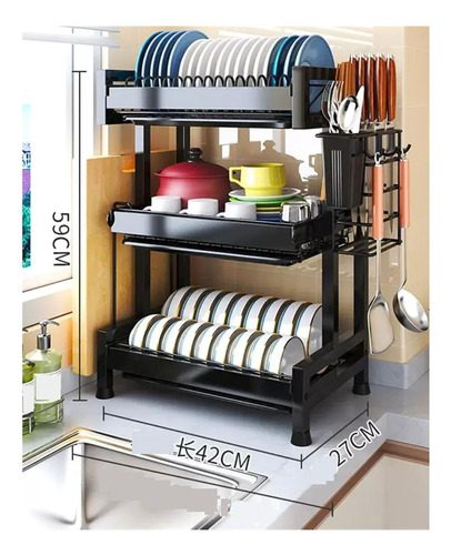 Escurridor Organizador Loza Almacenamiento Platos 3 Niveles Negro