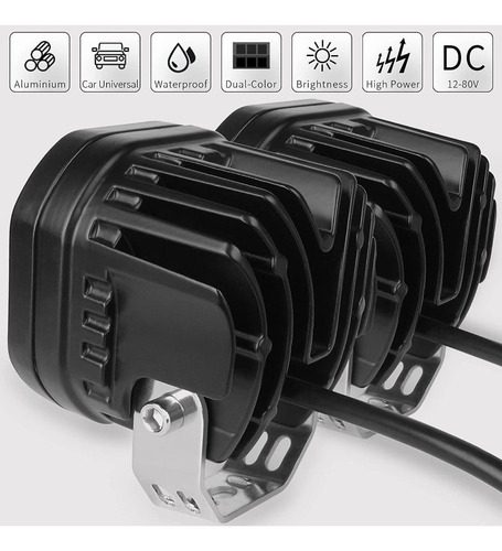Doble color: La luz blanca vista panorámica a la luz de conducción nocturna. La luz amarilla se puede cortar a la luz antiniebla. Esto satisfará mejor tus necesidades. Te permite ver la parte delantera más claramente y una conducción segura en climas niebla, nevados y lluviosos.