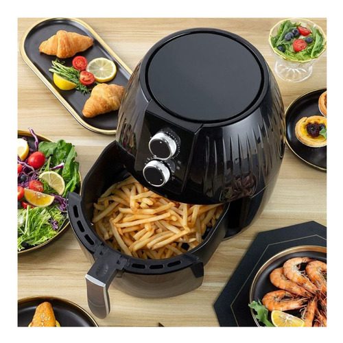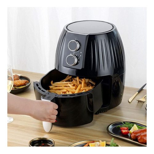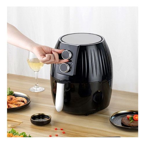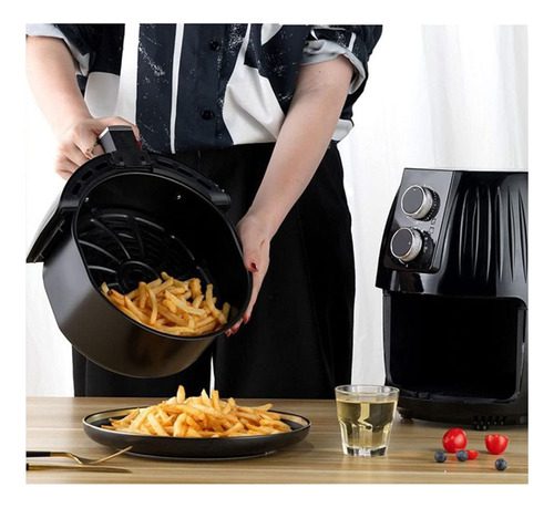 Diseño de perilla de moda: las freidoras de aire tienen dos perillas, una para controlar el tiempo y otra para controlar la temperatura. Puede elegir el tiempo y la temperatura que desee mientras cocina y luego preparar comida deliciosa. El dispositivo viene con un temporizador incorporado. Desactivará automáticamente la cuenta regresiva del dispositivo a cero. Puede apagar manualmente el dispositivo girando la perilla del temporizador en sentido anti horario a cero.