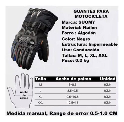 Guantes de motocicleta SUOMY 100% impermeables con función de pantalla táctil, guantes de invierno que mantienen el calor y protege del viento, se puede usar para esquÃ, ciclismo, Motocross, etc.Son ideales para los dÃas frÃos y lluviosos, asegurando que tus manos permanezcan secas y cálidas en todo momento.
