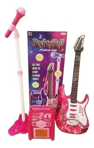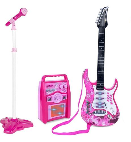 Juego Karaoke Infantil Con Guitarra Eléctrica, Micrófono Y Amplificador