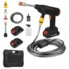 Lo que obtienes: El kit de lavadora a presión inalámbrico viene con 1 lavadora a presión, 1 cargador rápido, 1 manguera de 16.4 pies, 2 conectores rápidos, 1 botella de espuma de 300 ml, 1 filtro de agua, 1 manual de usuario.Además, este kit incluye una práctico maletin de almacenamiento para que puedas llevar todos los accesorios contigo a donde quiera que vayas. La lavadora a presión es ligera y fácil de manejar, lo que la convierte en una herramienta versátil tanto para el hogar como para actividades al aire libre.
