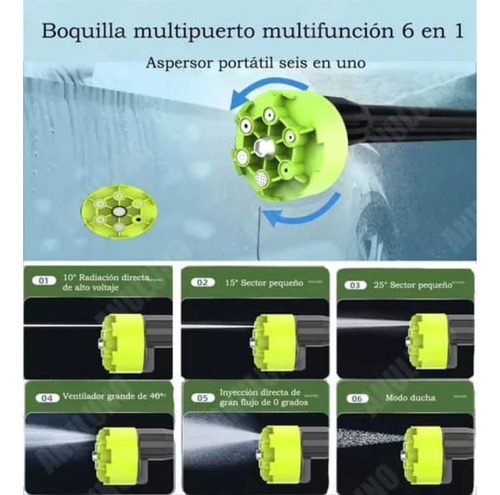 Boquilla multifuncional 6 en 1: el limpiador a presión alimentado por batería viene con una boquilla para modo recto/ducha. Es ideal para regar plantas, limpiar vehículos, herramientas de jardinería, bicicletas, ventanas, paredes, baños, puertas, vallas.