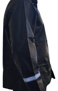 El impermeable resistente de PVC sin costuras está vulcanizado para aumentar su durabilidad y comodidad. Cuenta con tiras reflectantes estratégicamente ubicadas para una mayor visibilidad, junto con cierre y solapa de velcro para evitar filtraciones.