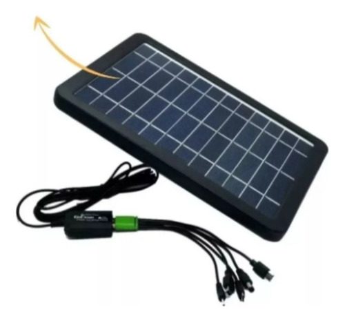 De Alto El panel solar CL-680 sirve para cargar cualquier teléfono móvil o dispositivo que sea recargable a 5V como Tablet, cámaras, power bank entre otros; usando el múltiple cabezal de cable o puede conectar un cable al puerto USB. -Sin baterías integradas, genera energía directamente con luz solar.