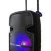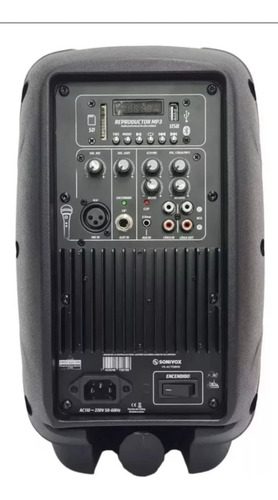 Woofer de 8”Tweeter: Bobina de voz de 25 mm, controlador de imán.Función de reproductor de audio: Bluetooth – USB – SD – Radio FMPantalla LCDPotencia 300W Max, 30W RMSEntrada de linea RCARespuesta de frecuencia: 50-20.000HzReproductor de MP3, Bluetooth, USB, SDSensibilidad: 90 dB +/- 3dBEntrada de micrófono con control de volumen y ecoMedidas Largo x Ancho x Alto: 30 x 28 x 48 cmVoltaje: 110V/220v
