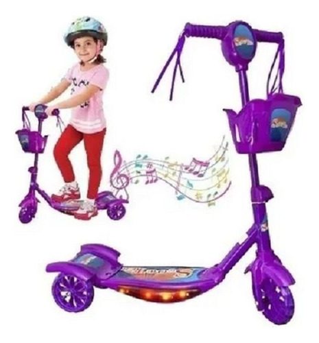 • Patineta scooter para niños y niñas con luces y canasta tres ruedas súper resistentes.