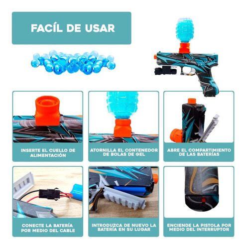 Disfruta de la emoción de los juegos al aire libre con esta pistola de biogel automática. Con un diseño innovador y funcional, es ideal para divertirse mientras juegas de manera segura y sin preocuparte por la limpieza. ¡La acción está garantizada!