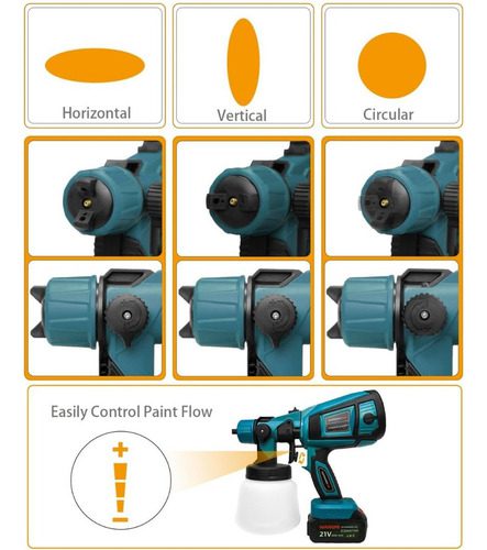 Ofrece 3 patrones de pulverización distintos: horizontal, vertical y circular, adaptándose a la mayorÃa de proyectos de pintura.