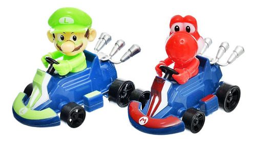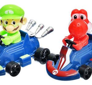 Mario y Yoshi son los protagonistas de este set, cada uno con su vehículo a escala.