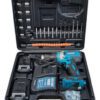 Ideal para trabajo pesado, con función de percutor, potente, con buena fuerza, dos baterías de litio, cargador carga rápida, maletín y diferentes herramientas de obsequio.