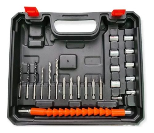 Excelente taladro percutor de 24 voltios cuenta con 2 velocidades es atornillador y desatornillador, luz linterna para fijar tu punto de perforación, medidor de carga, 25 tipos de torque, carga rápida de las baterías, fácil manejo ideal para todo tipo de perforación: madera, metal, pared, plástico.
