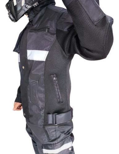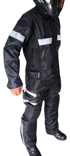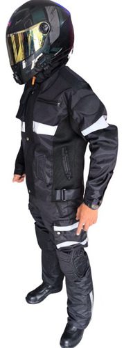 Traje integral de alta resistencia diseñado para motociclistas que operan en condiciones de